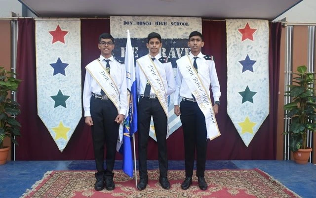 The Investiture Ceremony of Don Bosco High School, Panjim was held on 19th Feburary 2020 where the newly elected office bearers from Classes IX took pledge to hold the school motto as the newly elected Headboys for the year 2020-2021 .The new headboys are Synclair D’Mello, Webster D’Souza and Condrad Fernandez. The event was presided over by the honourable Rector and Principal Rev Fr Avin Carvalho and our Administrator Rev Fr Joel D’Souza. It was indeed a moment of great pride for the achievers and their parents to see their sons recognized for their promising leadership and extraordinary contribution to the school.