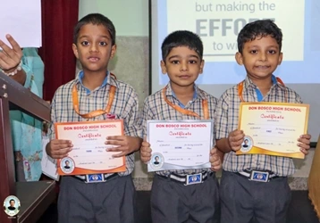 The Primary Investiture Ceremony at Don Bosco High School was a momentous occasion, marking the start of the academic year 2024-2025. This year's Headboys, Master Atsel Simoes and Master Anthony De Souza, were ceremonially invested with their duties by Fr. Jason Coelho,